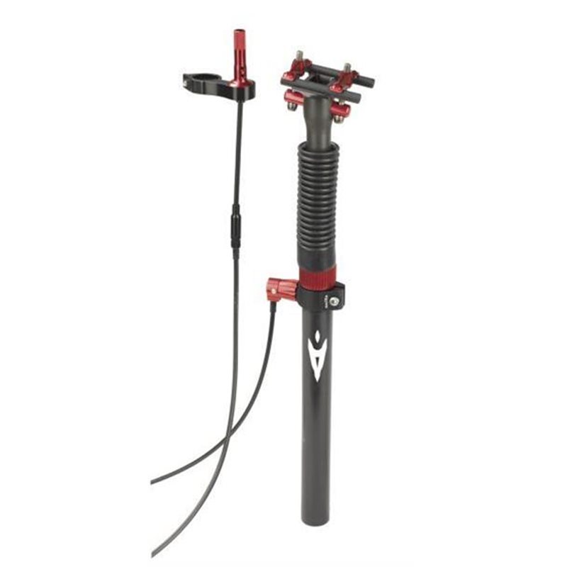 REGGISELLA MECCANICO art. 50198 REGGISELLA MECCANICO Reggisella telescopico a funzionamento meccanico. Regolazione con comando remoto su 3 posizioni (base + 2 step da 55 mm.) tubo interno in acciaio esterno in alluminio 6061 T6. Diametro: 316 / 272 mm. Lunghezza: 425 mm. Peso: 595 gr. circa Colore: nero con finiture anodizzate. Uso consigliato: ALL MOUNTAIN ENDURO DH.